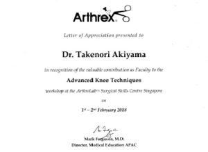 シンガポールで開催されたArthrex社のKnee Cadaver Trainingに講師・インストラクターとして参加してまいりました。