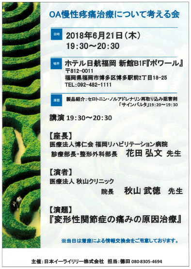 2018年6月21日に、ホテル日航福岡で行われたOA慢性疼痛治療について考える会で講演を行ってきました。